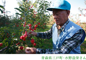 青森三戸町で水野さんだけが作っている稀少なりんご「ミニふじ」。 |